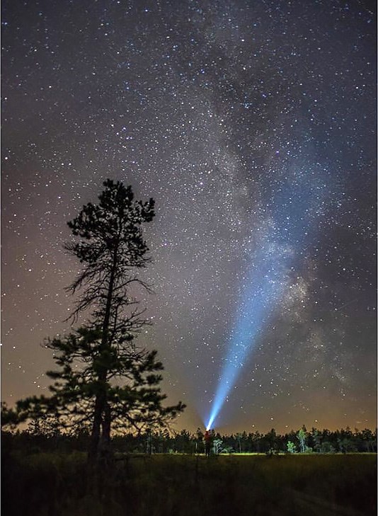 Når du fotograferer en stjernehimmel, har du ikke bruk for kameraets blits. Det kan imidlertid være morsomt å «male» eventuelle objekter i forgrunnen med en lommelykt eller annet LED-lys i løpet av eksponeringstiden.